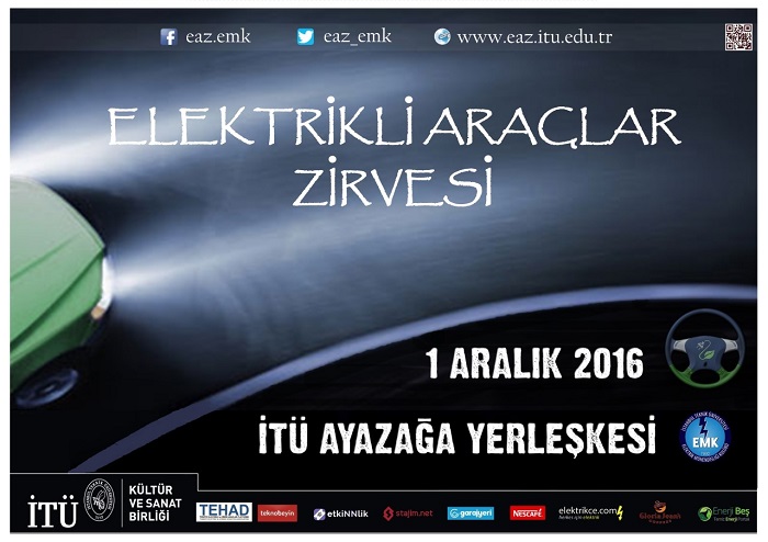 İTÜ Elektrik Mühendisliği Kulübü tarafından düzenlenecek Elektrikli Araçlar Zirvesi, 1 Aralık 2016 tarihinde İTÜ Maslak kampüsü Süleyman Demirel Kültür Merkezinde gerçekleştirilecek. Zirvede elektrikli araçlar konusu tüm detayları ile ele alınmaya çalışılacak. Elektrikli araçlar konusunda ülkemizde ve dünyada yapılan çalışmalar ve gelecek beklentileri hakkında katılımcılara sunumlar yapılacak.