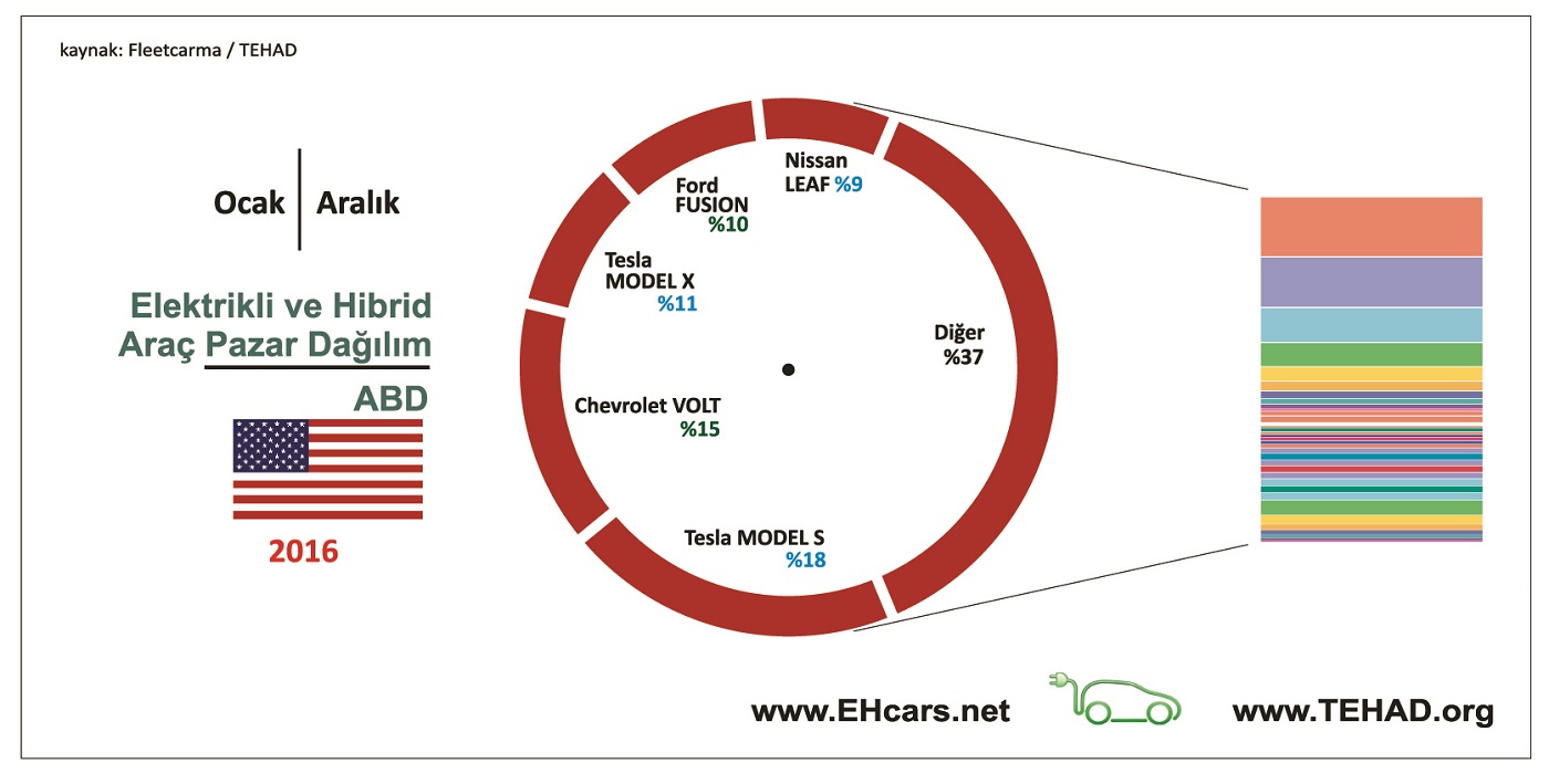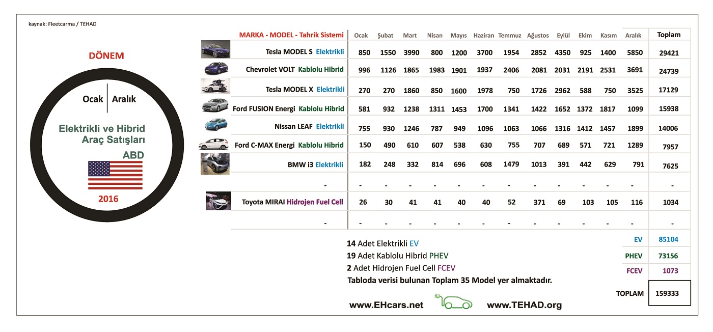 2016 Yılı ABD Elektrikli ve Hibrid Otomobil Satış Rakamları