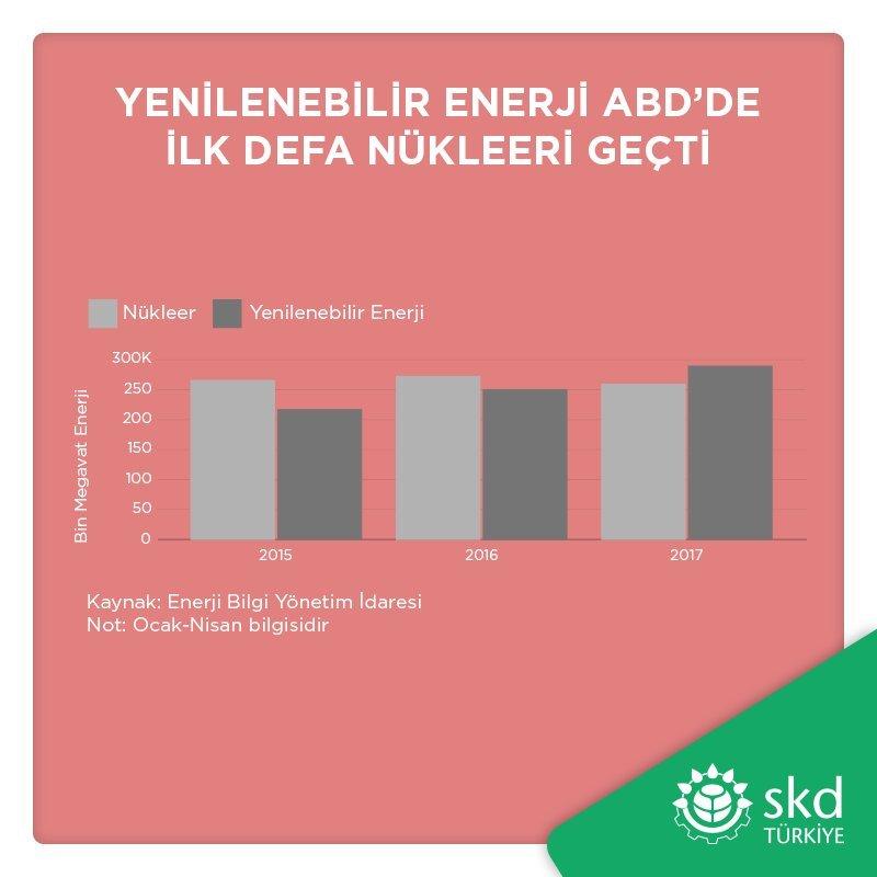SKD Türkiye (BCSD Turkey)’nin paylaştığı son görselde bunu kanıtlıyor. Önceki yıl Danimarka,bu yıl ABD.. Enerji üretim artık güneş ve rüzgardan! “