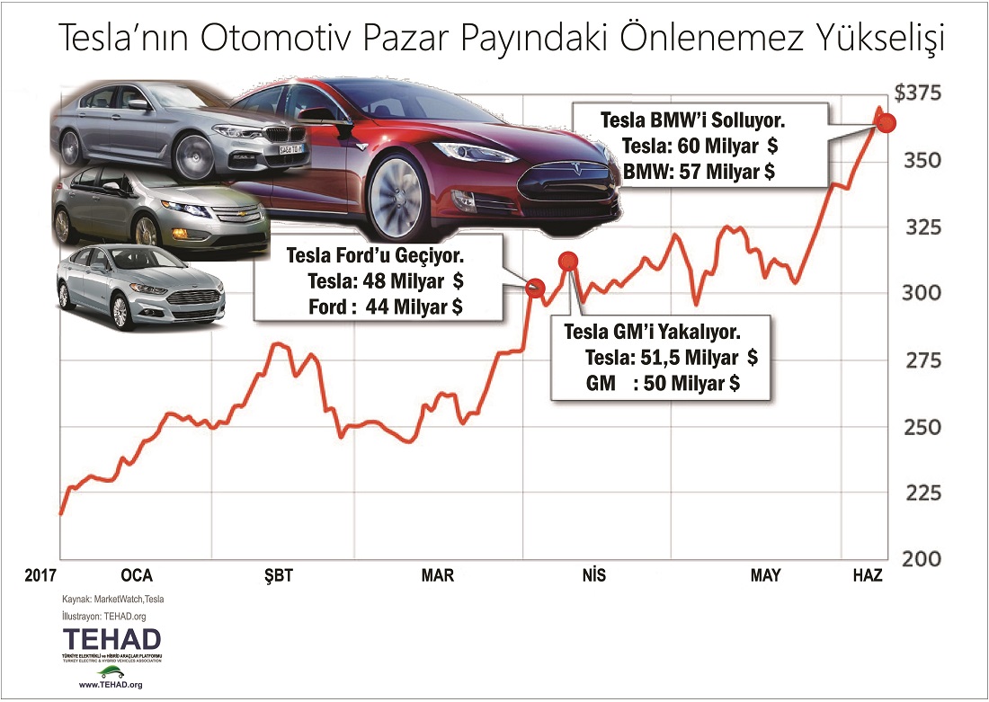 Tesla, yüzyıllık tarihi geçmişleri olan otomotiv devlerini son 3 yıl içerisinde kazanç noktasında ve pazar payı olarak hızlı bir geçmeyi başardı. Yılda sadece 100bin adet satış rakamına sahip olan Tesla, 3 Milyon adetlerin üzerinde satış gerçekleştiren Ford ve GM‘i kazanç noktasında sollamış durumda. Bu durum Tesla’nın diğer projeleri ile de desteklenince ( Space X, Boring CO, Gigafactory…) borsadaki hisse değerlerini de olumlu yönde etkiliyor elbette.