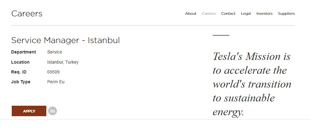 Tesla ‘Servis Yöneticisi’ iş ilanı;