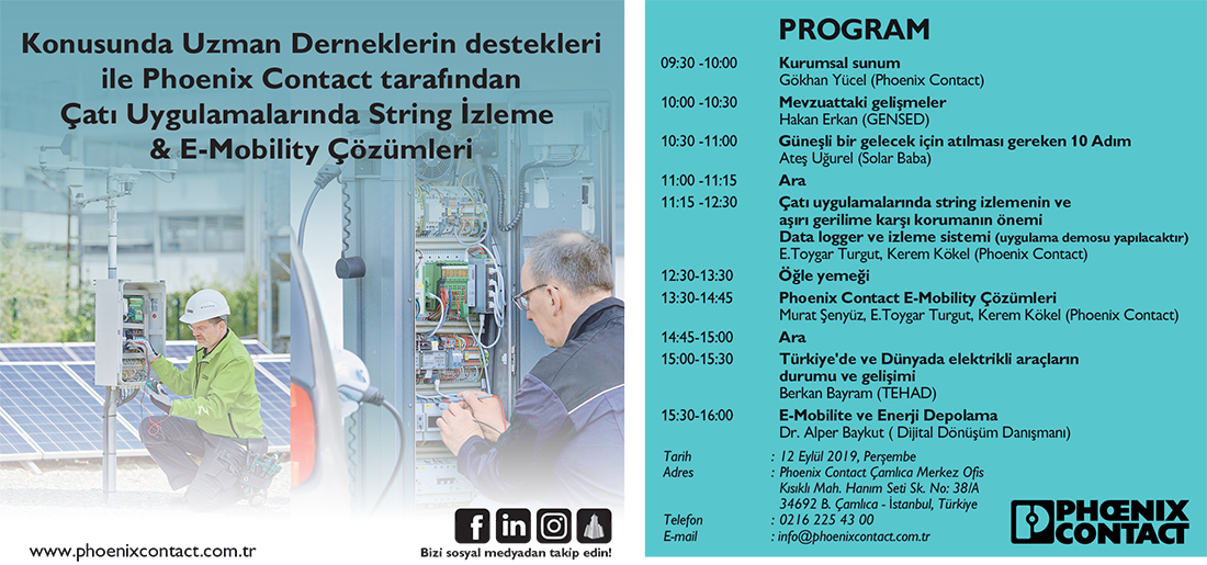 12 Eylül 2019 Perşembe günü, Phoenix Contact Türkiye merkez ofisinde gerçekleşecek olan Seminer’e tüm ilgililer davetlidir.