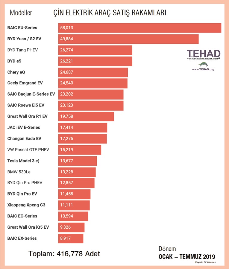 Çin’de, ülkemiz toplam otomotiv pazarı kadar elektrikli otomobil satıldı.