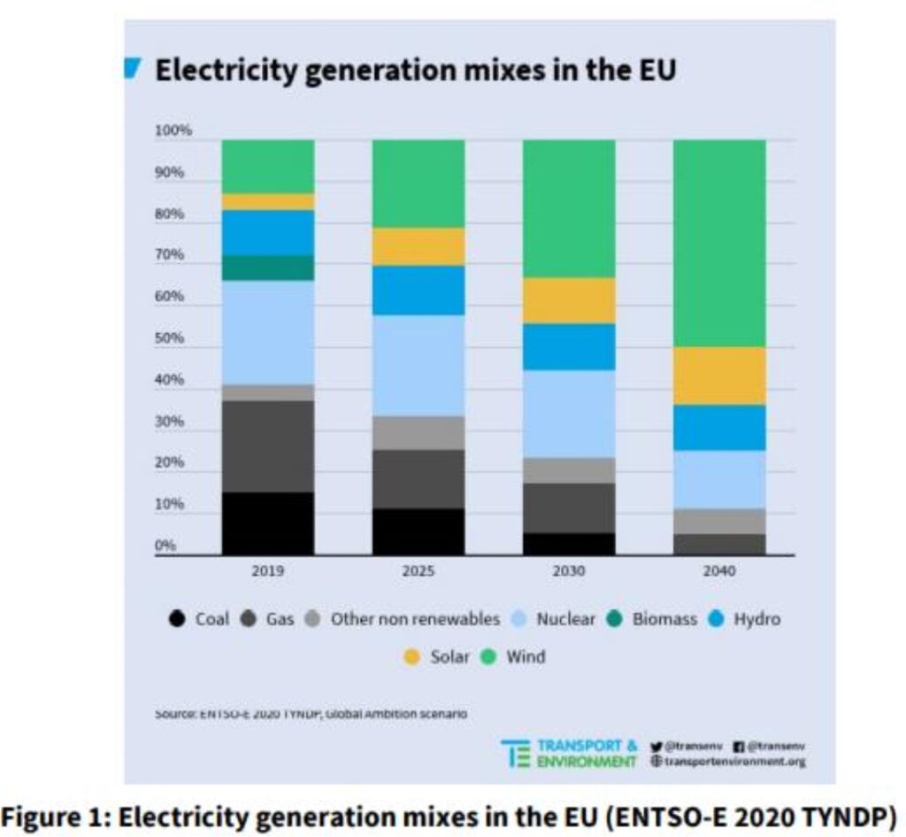 Hatta aynı makalede 2040 yılı için Avrupa elektrik üretiminin hangi kaynaklardan gerçekleşeceğinin projeksiyonu da verilmiş. Tabi burada bana ilginç gelen rüzgar enerjisinin güneşten daha fazla yüzdeye sahip olması! Özellikle enerji depolama sistemleri gelişiyorken ve güneş enerjisi sistemleri maliyetleri düşüyorken neden güneş enerjisi projeksiyonu bu kadar düşük kalmış, bu kısmı anlayamadım.