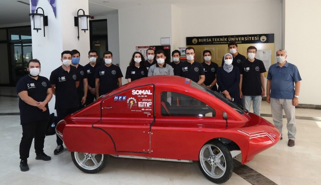 Bursa Teknik Üniversitesi Elektrikli Araçlar ve Otonomi Topluluğu öğrencileri, TÜBİTAK Efficiency Challenge 2020 yarışması kapsamında topluluğun ilk aracı, yüzde yüz elektrikli C-ARF’ı tasarladı ve üretti.