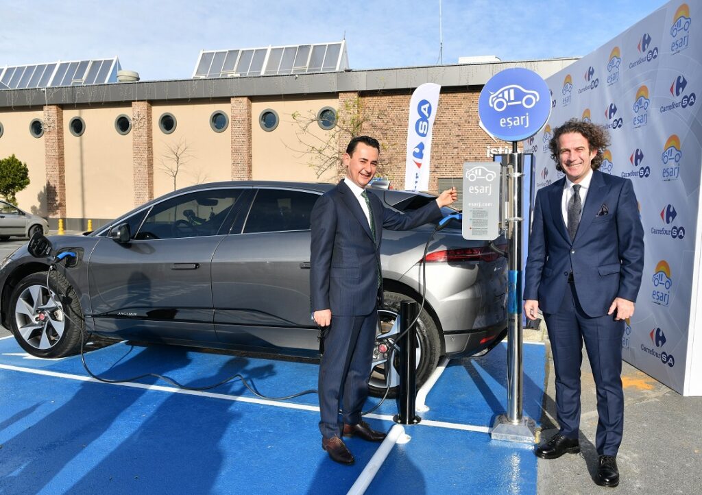 Geçtiğimiz günlerde ilk yurtdışı atılımı gerçekleştirip İsveç’e de açılan Eşarj, yurtiçinde de şarj istasyonu noktalarını genişletiyor. Yenilikçi bakış açısıyla müşterilerine sürdürülebilir çözümlerin yanı sıra, kaliteli ve kesintisiz hizmet sunan Eşarj, İstanbul’da yer alan İstinye CarrefourSA Hiper Anadolu Hisarı CarrefourSA Gurme ve Zekeriyaköy CarrefourSA Gurme marketlerinin otopark alanına şarj istasyonları kurdu.