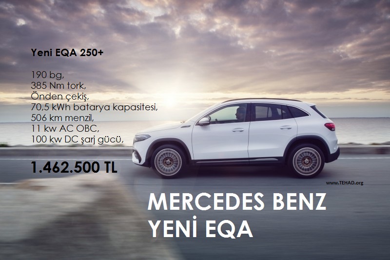 Mercedes-EQ ailesinin tamamen elektrikli kompakt SUV segmentinden EQA ve EQB, yeni motor seçeneğiyle Türkiye’de satışa sunuldu. EQA ve EQB, güçlü ve verimli elektrikli güç-aktarma sistemleri, akıllı enerji geri-kazanım özelliği ve elektrikli zekâ temelli tahmine dayalı navigasyonla kompakt SUV segmentinde öne çıkıyor. EQA 250+ AMG+ 1.462.500 TL’den, EQB 250+ AMG+ ise 1.510.000 TL’den başlayan fiyatlara sahip.