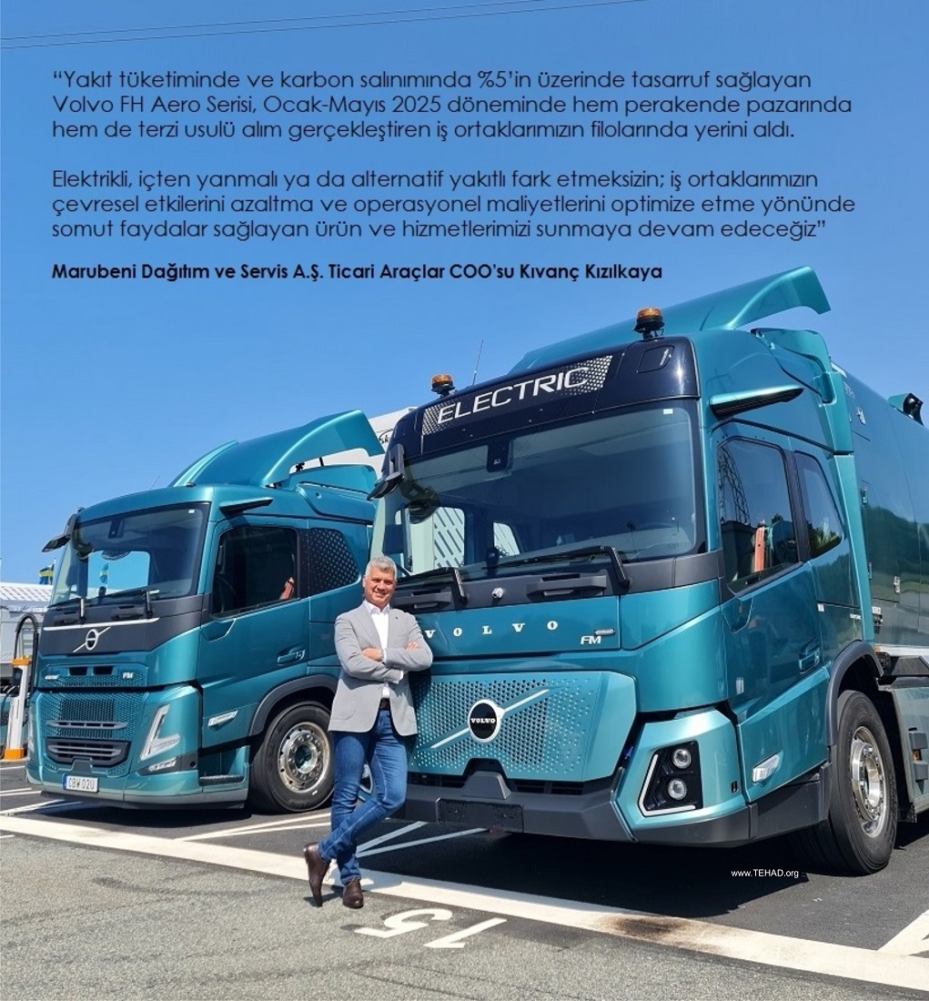 Yakıt tüketiminde ve karbon salımında %5’in üzerinde tasarruf sağlayan Volvo FH Aero Serisi, Ocak-Mayıs 2025 döneminde hem perakende pazarında hem de terzi usulü alım gerçekleştiren iş ortaklarımızın filolarında yerini aldı. Elektrikli, içten yanmalı ya da alternatif yakıtlı fark etmeksizin; iş ortaklarımızın çevresel etkilerini azaltma ve operasyonel maliyetlerini optimize etme yönünde somut faydalar sağlayan ürün ve hizmetlerimizi sunmaya devam edeceğiz” dedi.