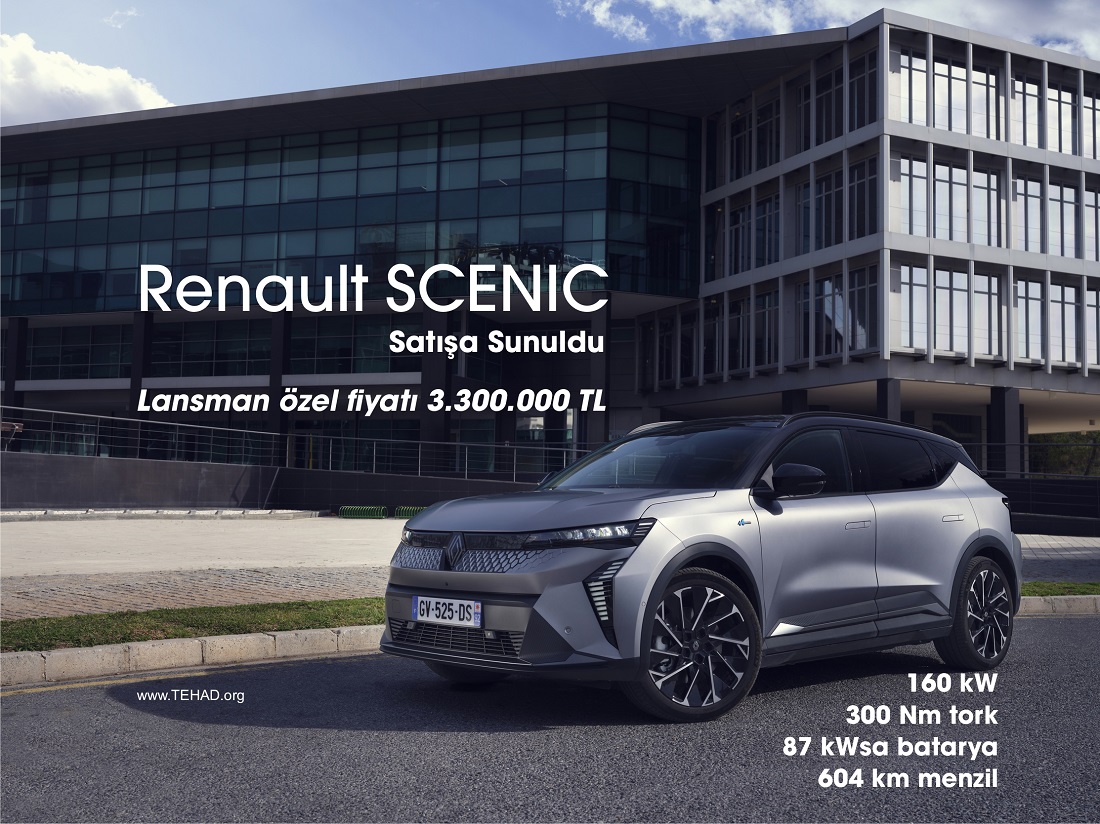 Renault, C-SUV segmentindeki tamamen elektrikli temsilcisi Scenic E-Tech Elektrikli’yi Türkiye’de satışa sunuyor. 2024 yılında “Car of the Year” (Avrupa’da Yılın Otomobili) seçilen Renault Scenic E-Tech Elektrikli, markanın elektrikli mobilite vizyonunun en iddialı yansımalarından birini meydana getiriyor. Geniş iç hacmi, ileri teknoloji çözümleri ve sürdürülebilir tasarım yaklaşımıyla dikkat çeken Scenic, Türkiye’de 3.490.000 TL liste fiyatıyla konumlanırken, lansmana özel 3.300.000 TL’den başlayan fiyatlarla satışa sunuluyor.